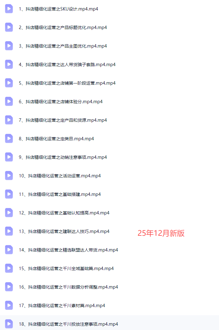 VIP 抖音小店 厚昌柯楠-千川操盘手训练营完整版112节2025年(价值1288元) 课程简介: 14年官方操盘手教你学千川 #2月18同步更新 课程目录: ├──{... 10 月前 0 0 25 99