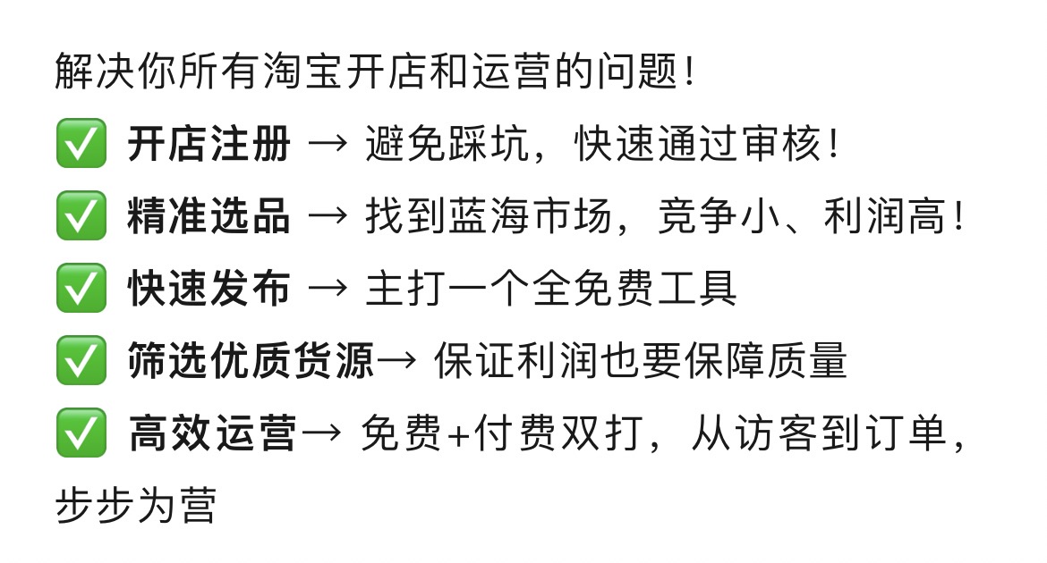 淘宝开店注册、软件准备,到选品、上货、找货源,再到运营、推广、下单发货等,淘宝起店运营各个环节详细讲解。新手也能学的无货源电商课程
