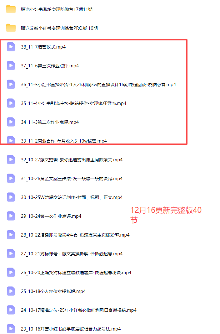 课程简介: #12月16更新完整版40节 全网最新小红书课程!!!!带你从0到1做一个高变现的小红书博主 视频截图: 课程目录: 永久会员免费下载,点击此处升级永久会员 声明:本站所有文章,如无特殊说明或标注,均为本站原创发布。任何个人或组织,在未征得本站同意时,禁止复制、盗用、采集、发布本站内容到任何网站、书籍等各类媒体平台。如若本站内容侵犯了原著者的合法权益,可联系我们进行处理。